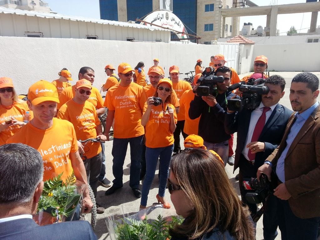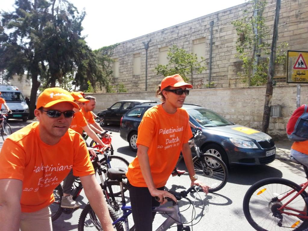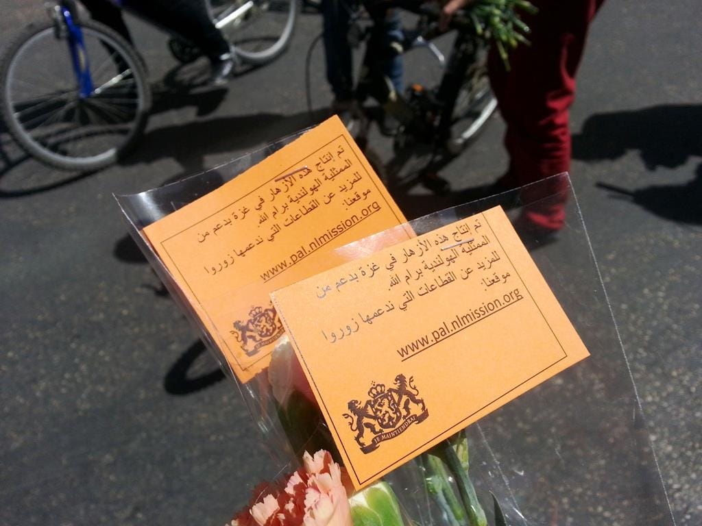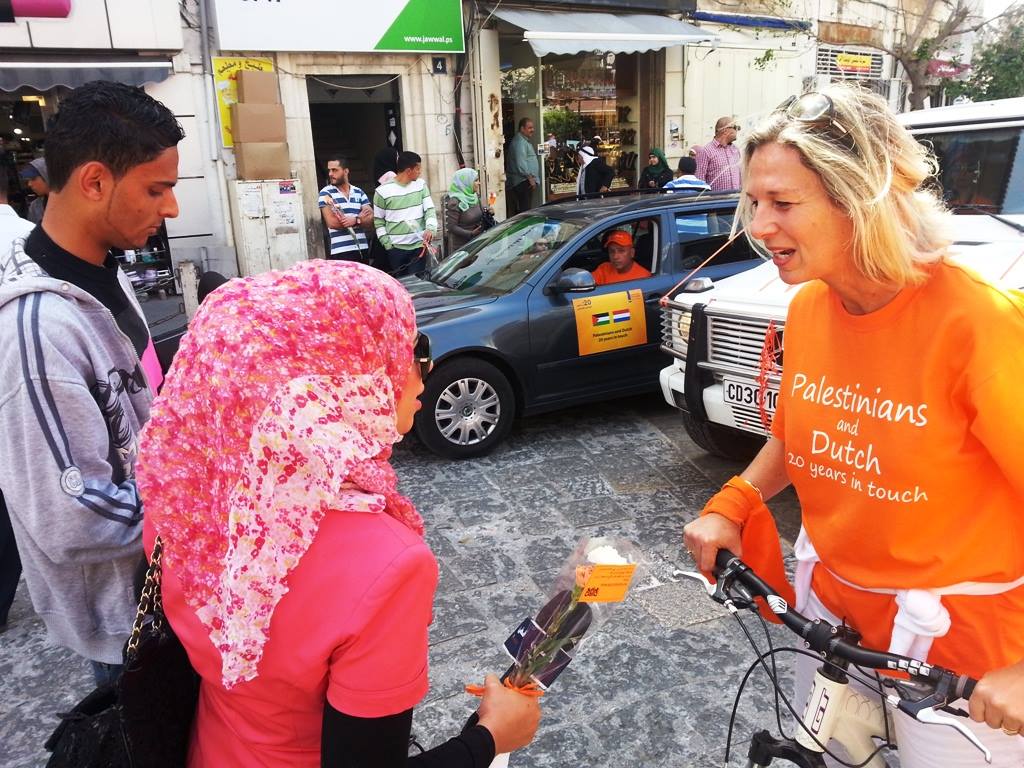 كجزء من الاحتفالات بمناسبة الذكرى 20 لاقامة العلاقات الدبلوماسية بين مملكة هولندا والسلطة الفلسطينية، نظم مكتب الممثلية الهولندية ( NRO ) في رام الله موكب لقيادة الدراجات في المدينة والذي ضم حوالي 50 من الدراجين الهولنديين و الفلسطينيين وقد قاموا بتوزيع القرنفل للناس في وسط مدينة رام الله. 1،500 من ازهار القرنفل جلبت خصيصا من مشروع ممول من الممثلية الهولندية في غزة بهدف دعم المزارعين الفلسطينيين لزيادة زراعة القرنفل و غيرها من المنتجات الزراعية.