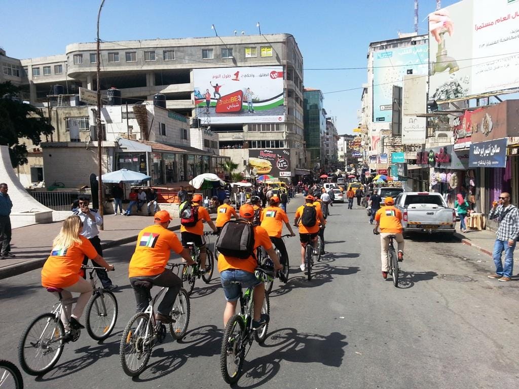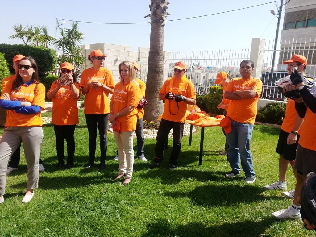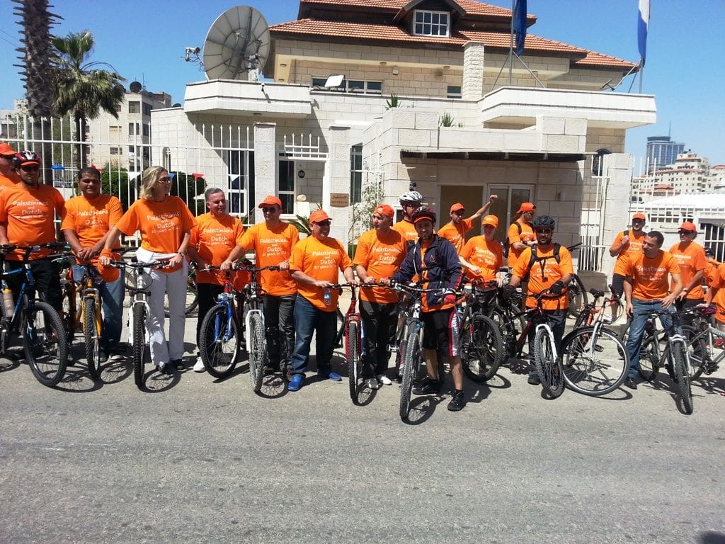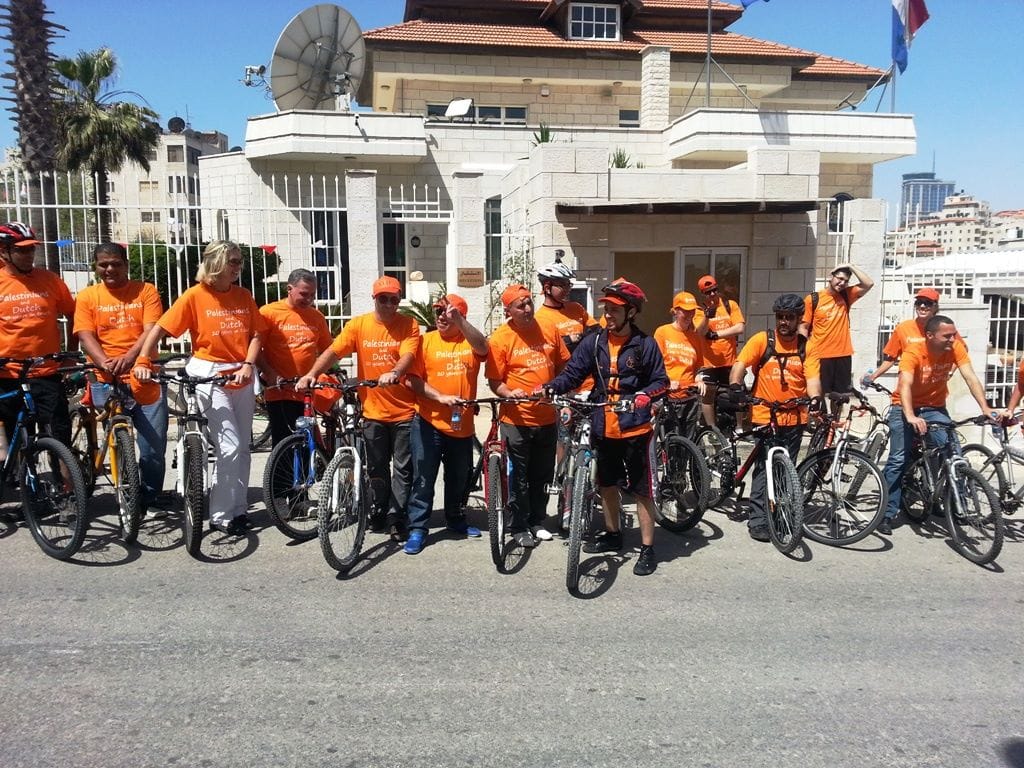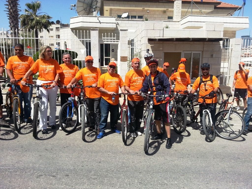 كجزء من الاحتفالات بمناسبة الذكرى 20 لاقامة العلاقات الدبلوماسية بين مملكة هولندا والسلطة الفلسطينية، نظم مكتب الممثلية الهولندية ( NRO ) في رام الله موكب لقيادة الدراجات في المدينة والذي ضم حوالي 50 من الدراجين الهولنديين و الفلسطينيين وقد قاموا بتوزيع القرنفل للناس في وسط مدينة رام الله. 1،500 من ازهار القرنفل جلبت خصيصا من مشروع ممول من الممثلية الهولندية في غزة بهدف دعم المزارعين الفلسطينيين لزيادة زراعة القرنفل و غيرها من المنتجات الزراعية.